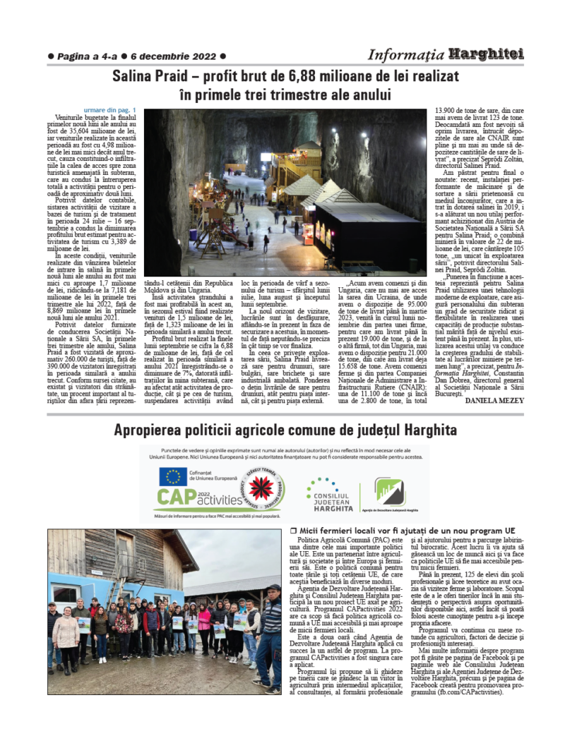 Agenția de Dezvoltare Județeană Harghita și Consiliul Județean Harghita participă la un nou proiect UE axat pe agricultură. Programul CAPactivities 2022 are ca scop să facă politica agricolă comună a UE mai accesibilă și mai aproape de micii fermieri locali.