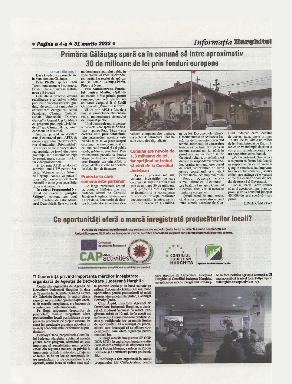 Conferința a fost organizată în cadrul programului UE CAPactivities, pentru care Agenția de Dezvoltare Județeană Harghita și Consiliul Județean Harghita, au aplicat cu succes. Programul urmărește să facă politica agricolă comună a UE mai accesibilă la nivel local.