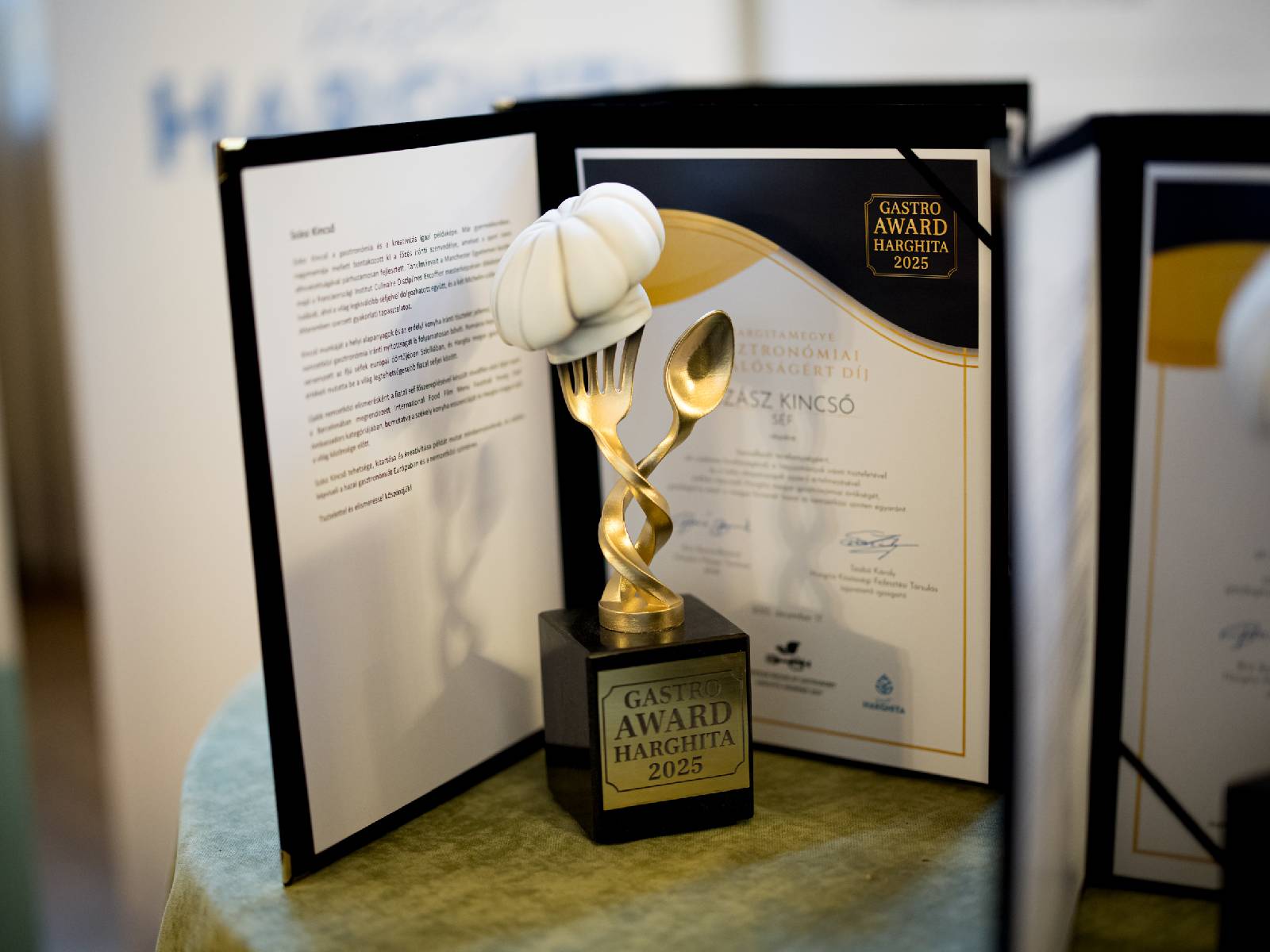 Astfel, într-un cadru festiv, au fost înmânate cinci premii de execlență gastronomică pentru Balázs Hunor, chef-șef și Laczkó Szilárd Botond, sous-chef (Restaurantul Kotyogó), precum și chefilor Bándi Domokos, Szász Kincső și Zsigmond András. Activitatea lor se caracterizează printr-o abordare bazată pe ingrediente locale, echilibrul dintre tradiție și inovație, precum și printr-un înalt grad de devotament profesional.