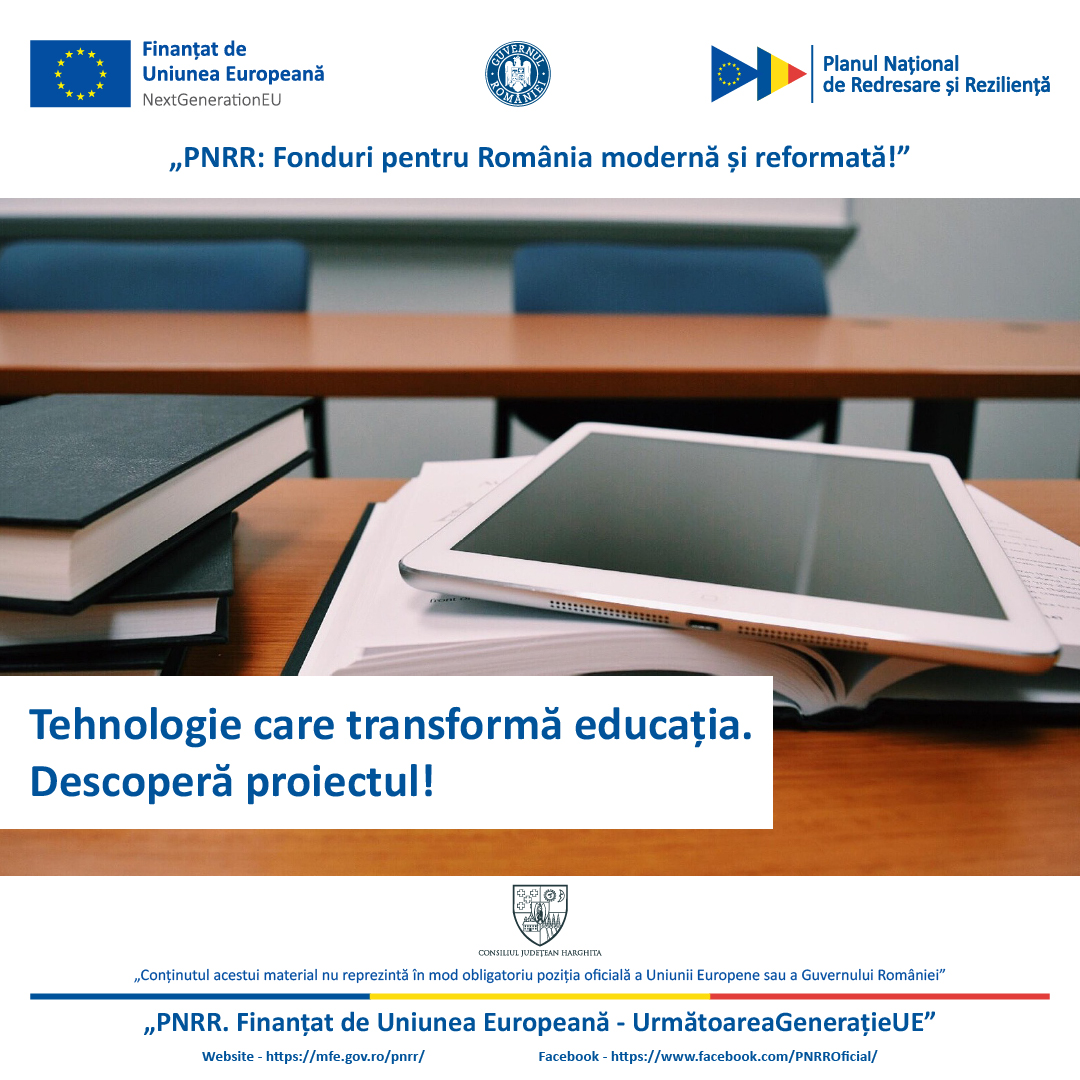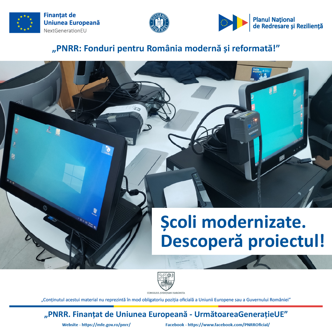 „Dotarea cu mobilier, materiale didactice si echipamente digitale a 83 unitati de invatamant cu personalitate juridica si conexe din judetul Harghita”, finantat prin Planul National de Redresare si Rezilienta (PNRR) – Componenta C15 Educatie