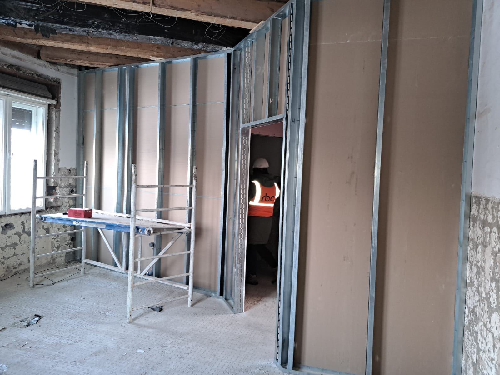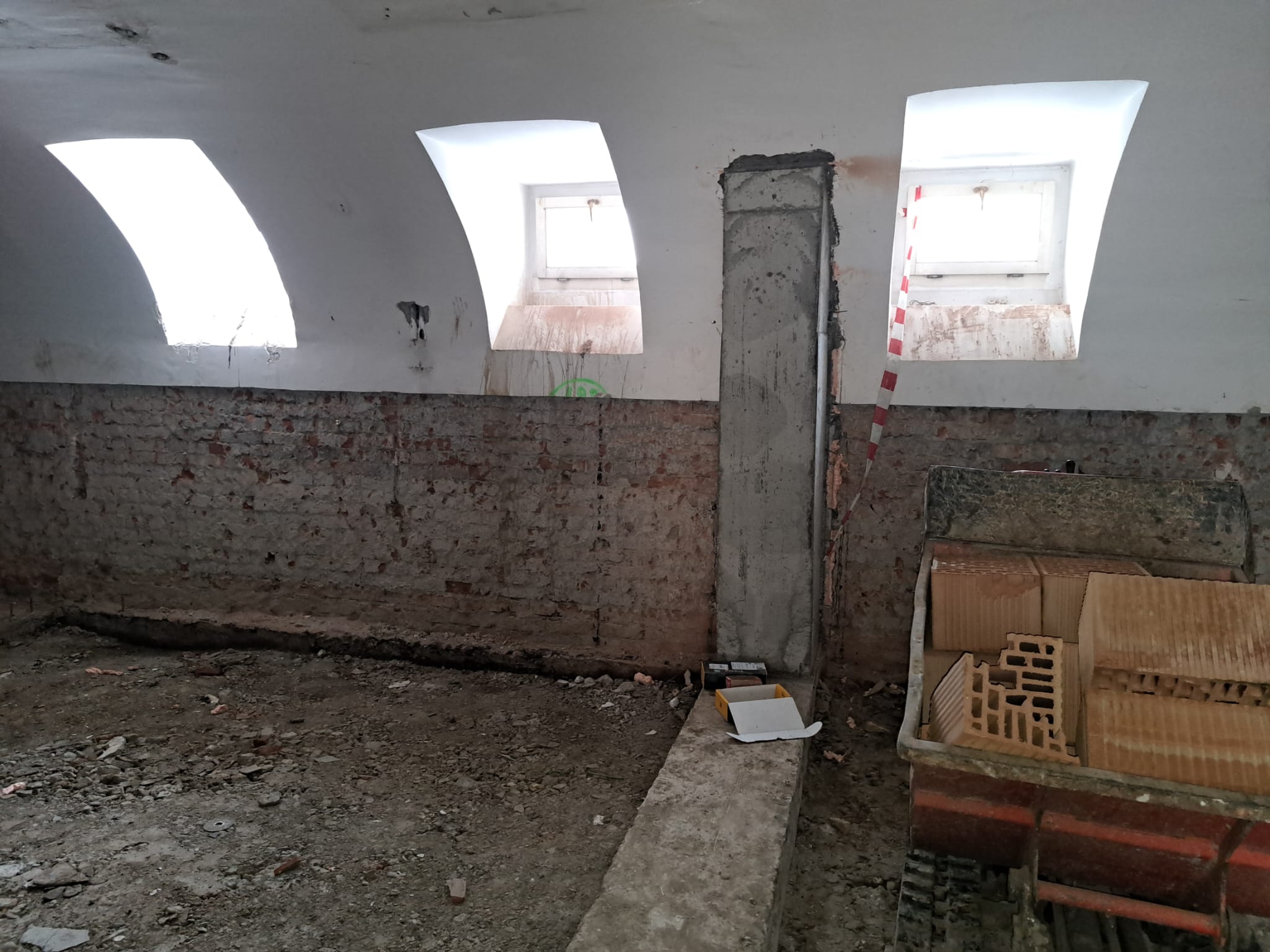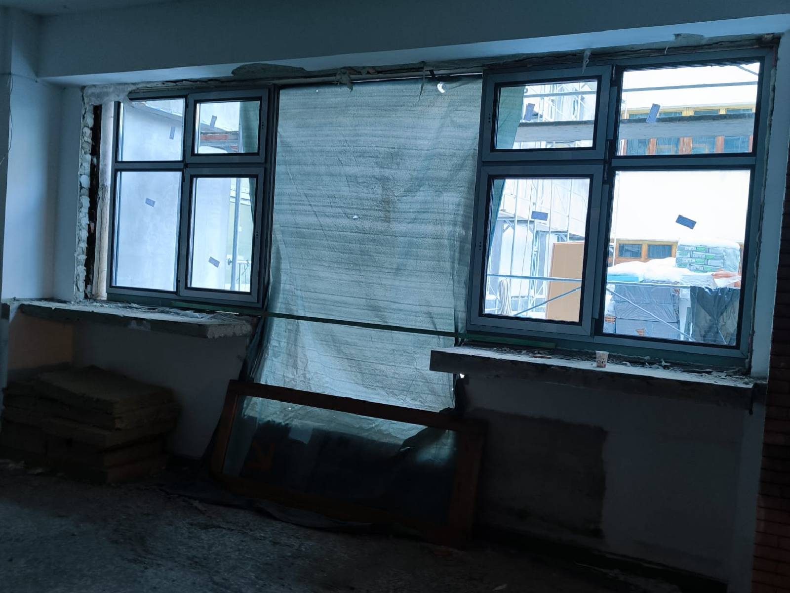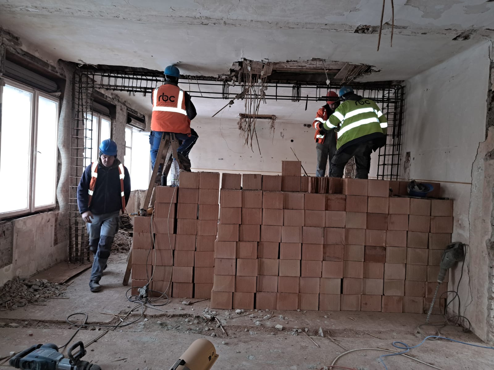 Astfel, în clădirea fostei policlinici stomatologice, executantul lucrează cu un efectiv de aproximativ 40 de persoane. La subsol și la etajul întâi se realizează compartimentarea spațiilor și se execută stâlpii pentru consolidarea seismică a clădirii. În paralel, se realizează rețeaua de canalizare, iar structura acoperișului a fost finalizată înainte de venirea iernii.