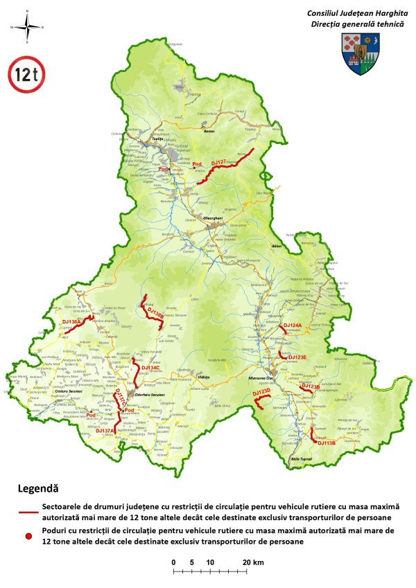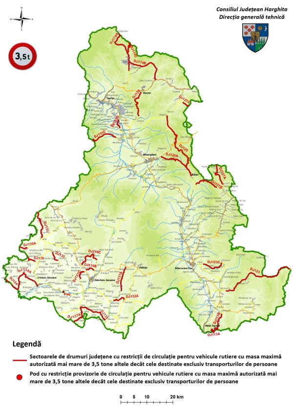 În cazul Consiliului Județean Harghita a fost stabilită restricție de tonaj de 3,5 tone și 12 tone, emiterea, urmărirea și monitorizarea AST-urilor pe drumurile județene din județul Harghita revenindu-i Direcției Tehnice a Consiliului Județean, prin Serviciul de Administrare a Drumurilor Județene, Compartimentul Avizare, Monitorizare și Control.